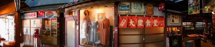 豊後高田市は、昭和30年代をテーマに、当時の店舗の外観を再現した商店街を町作り事業で 興し、昭和の町として売り出しています。 昭和のはじめに作られた大きな農業倉庫を改築し、昭和ロマン蔵と名づけ、懐かしいおもちゃ 昔の懐かしい生活道具など5万点以上を「駄菓子屋の夢博物館」などに展示しています。