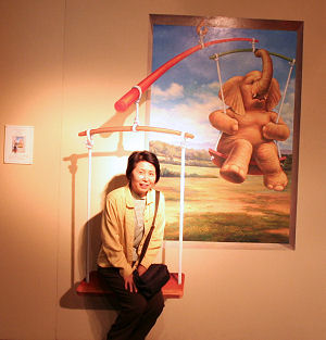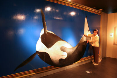 | ただ絵の前で腰を下げただけ | 絵から飛び出たイルカと | |