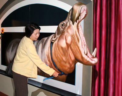 額から飛び出たように見える目の錯覚を利用した美術館のトリック 立体写真で見る