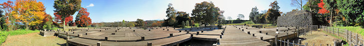 西の丸は岡城の主要殿舎に変遷している。(岡城は山城的殿舎(御廟)、平山城殿舎的(本丸、二の丸、三の丸)、