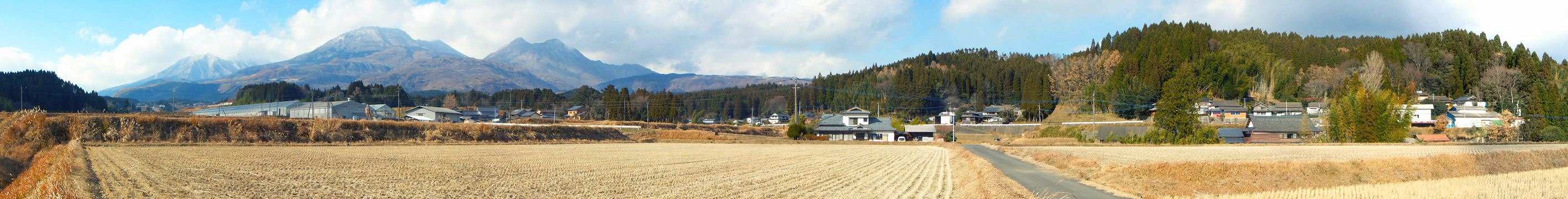 田んぼから眺めた九州アルプス(くじゅう連山)