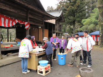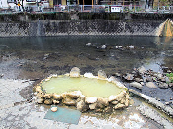 | 天満神社では餅つきやスッポン料理の試食も | 芹川には無料の露天風呂ガニ湯があります | |