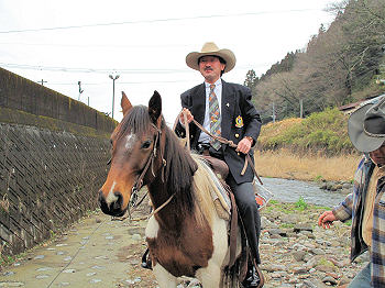 | この芹川のOBSテレビの取材班が | 馬に乗って川を歩く試乗会 | |