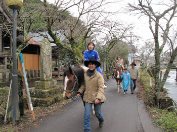 | 阿蘇の牧場から馬8頭をつれてきた専門インストラクター | 子ども達も楽しそう | |