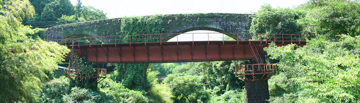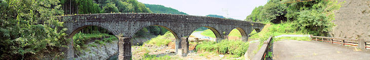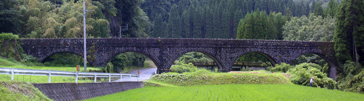 | 岩戸橋(竹田市荻)大分県で3番目に古い石橋 | 大分県は石橋の数が日本一です、宇佐市院内町や 豊後大野市緒方や清川の石橋の他 トンネルが多い竹田市(別名:レンコン町とも言われる)にも 立派な石橋が多くあります 阿蘇溶岩台地が侵食されてできた地形上渓谷が多く 必然的に洪水でも流されない石橋が求められたのでしょう。 明治・大正時代に架けられた石橋も多く現在でも使われており 先人の技術の高さに驚きます。 ここでは ●明正井路第一拱石橋 6連アーチの 灌漑用水路で長さ78mは石橋水路橋としては日本一。 ●山王橋 3連アーチの竹田市最古の石橋 ●若宮井路笹無田水路橋 2連の巨大な アーチの灌漑用水路 ●若宮井路鏡水路橋 2連のアーチの 灌漑用水路 ●住吉橋 2連アーチの石橋 などを紹介します。 |