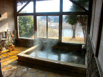 翡翠之庄のお部屋の広いデッキのなかの露天風呂