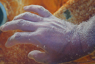 手を入れると炭酸ガスの泡がみるみる付着していきます
