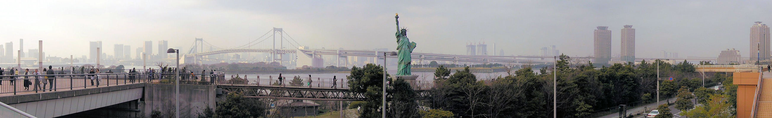 レインボーブリッジと自由の女神像