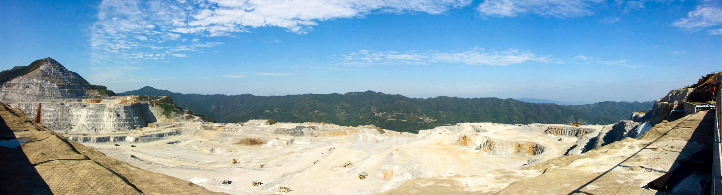 日本で一番広い石灰岩採掘現場です 100トンもある巨大なダンプが豆粒のよう