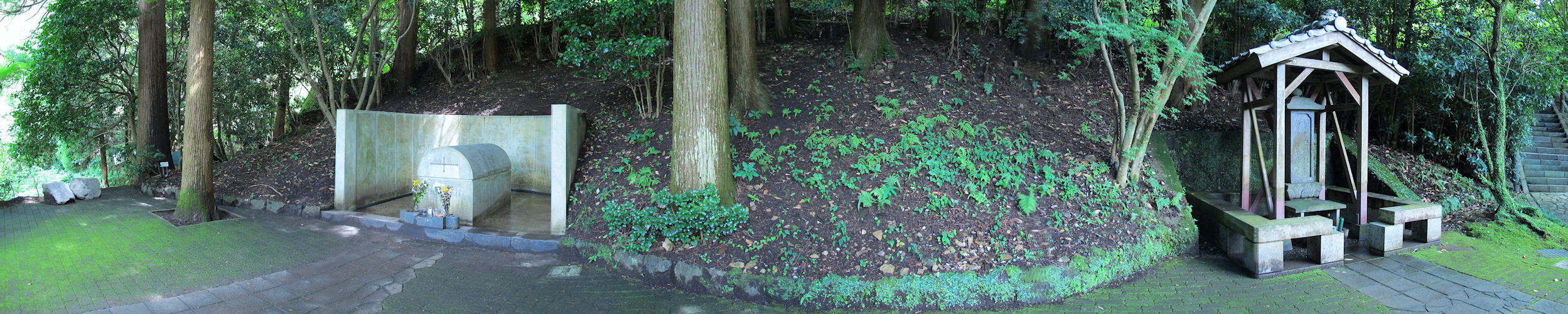 2012年8月26日 画面左はキリスト教式の墓(上田保氏が建てた墓) 右は仏式の墓(宗麟の家臣の末裔が建てた墓)
