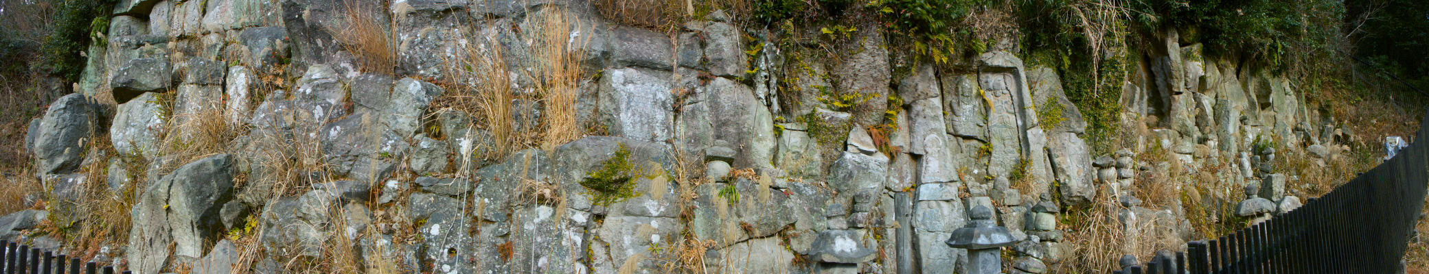 室町時代に彫られたたくさんの磨崖仏です 残念な事に雑草に覆われ荒れています