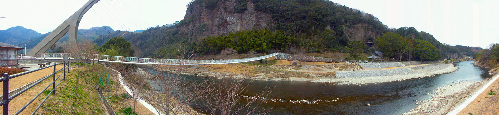 つり橋の長さ132.5m 歩行者専用です 鷹栖観音に向かって合掌しているイメージです