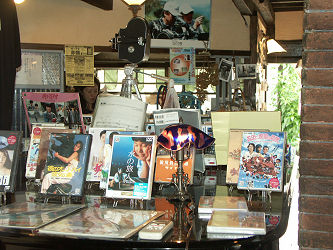 | 喫茶「クランク・イン」の店内には映画グッズが 大林宣彦監督の映画「なごり雪」のロケも臼杵でありました | |