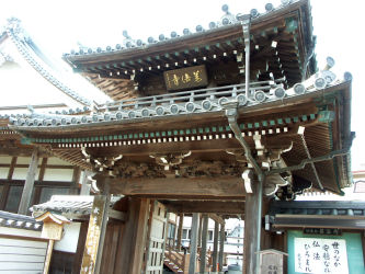 | 福良天満宮は昔はお寺だったそうで石灯籠に蓮華が | 玄関が3階にある木造の3階建て |