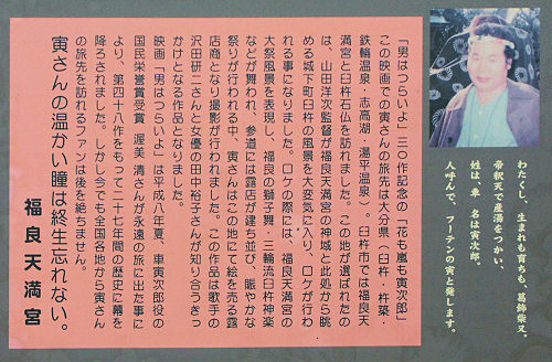 | 福良天満宮で 「花も嵐も寅次郎」のロケが行われました | |