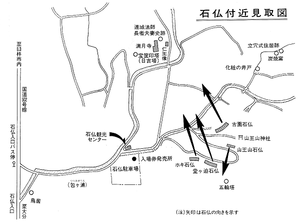 古園石仏を代表する大日如来は長い間頭部だけ下に安置され、臼杵石仏の顔として 慣れ親しまれていましたが、一連の保存修理の一環として復元か否か、賛否大論争の末 平成5年8月25日仏頭は復位されました。下の写真は復位前の仏頭写真
