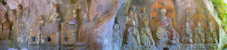 臼杵磨崖仏(うすきまがいぶつ)は、大分県臼杵市深田にある4群60余体の磨崖仏で、臼杵石仏の名で知られています。