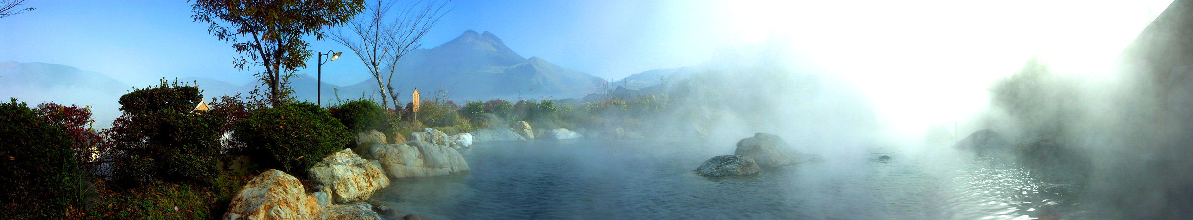 夢想園の露天風呂からの風景がいいと聞いたのでわざわざ高い宿泊料を払って家族で1泊しました 朝9時から10時までのお風呂掃除時間に写させてもらいましたが この日は朝霧が濃く 肝心の由布岳が 見えません やっと午前10時にこの景色を撮影できました
