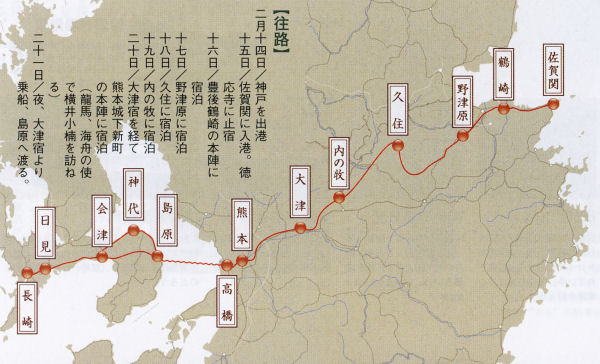 翔鶴丸は予定通り、2月15日午後5時、豊後佐賀関へ到着し、一行は徳応寺という寺院に泊まった。