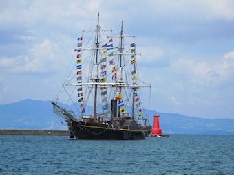 帆船「観光丸」が長崎から大分のかんたん港へ入港してきました。