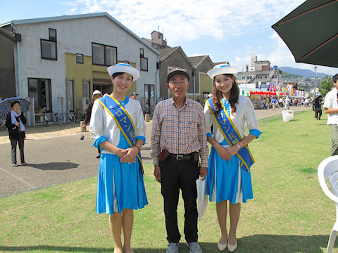 乗船しています。その一行を西大分のかんたん港で釘宮市長と