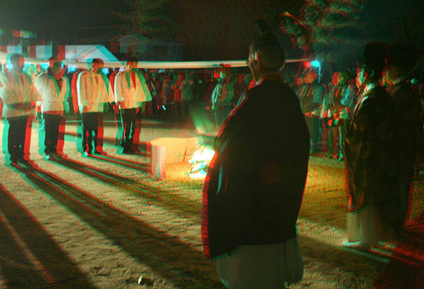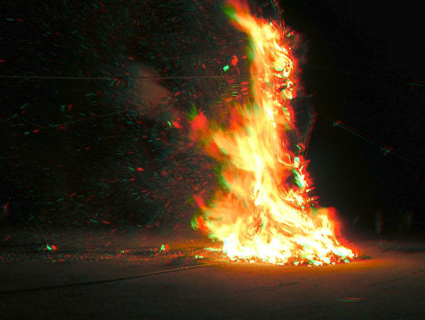 2007年1月13日 佐伯市の大入島中学グラウンドでトンド火祭りが開催されました