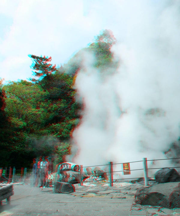 山地獄と鬼山地獄(別名ワニ地獄)を立体写真で紹介します