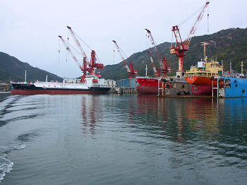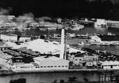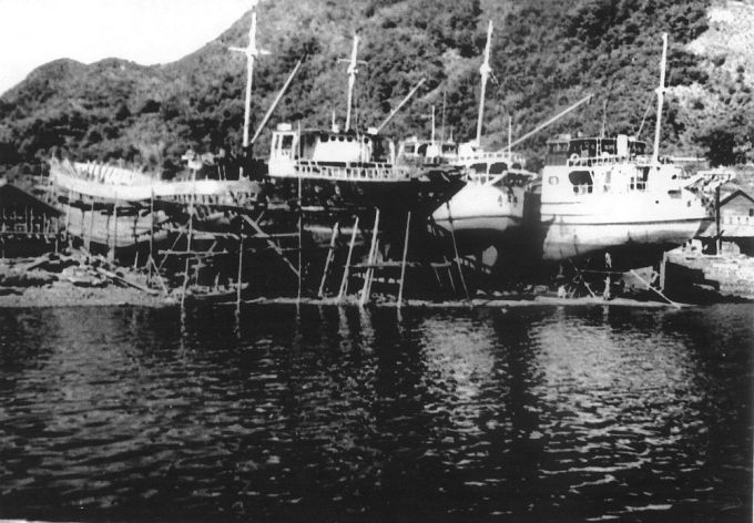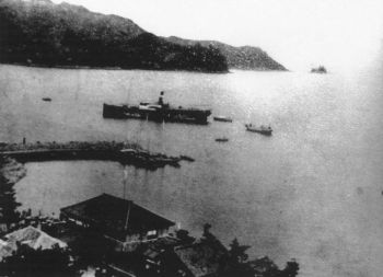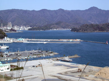 葛港 今のパノラマ本郡の要港なり水深く波静なり大船を泊するに適す東伊予を距る十八里船舶常に幅湊す |
