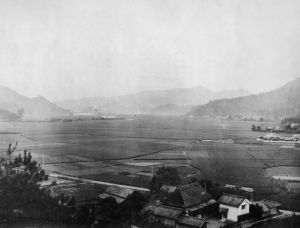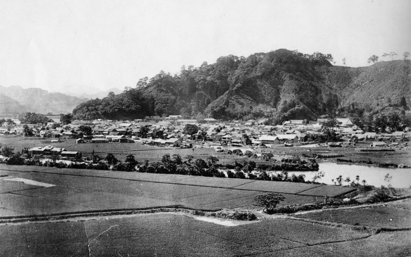 上野村風景遥かに浄土宗岡平山西運寺望む此寺は慶長十二年良意和尚の創設する處なり風景愛すべし 切畑垂簾山十年西南の役賊軍の一隊佐伯より逃れ此山頂に壘を築き暫く官軍を防ぐ所なり 祇園神社 今のパノラマ切畠村江良に在り大同年間の創始祭神は素盞雄尊なり 直見尋常小学校 今のパノラマ直見村に在り |