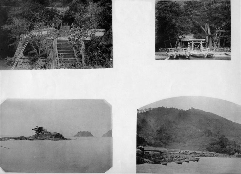 伊勢本神社 今のパノラマ下入津村波多の浦に在り伝え云ふ神武天皇の東征し給ふや舟師を此浦に泊し前途を祝し玉ふと今の御神體は古代の土器なり 宮の浦 今のパノラマ米永津湾の一部なり景行天皇の熊襲を親征し給ふや周防国佐婆津より船を放ちて海部の宮の浦に渡り泊し給ふと是れ古代の海路なるべし里人尊崇して宮の浦と称す 粟島 今のパノラマ米水津に在らり例年正月十六日群参せり 屋片島 今のパノラマ蒲江湾の前方に在り風景絶妙なり |