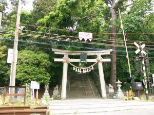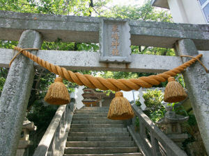 神井 今のパノラマ大入島の東南端日向泊りに在り神武天皇の東征し給ふや波多の浦にて舟導を得て此に泊す此地もと水に乏し天皇親ら弓矢を取り一崖の下に立で給ふ清水忽然として湧出す今に至る迄神井と称し天皇の霊を尊崇すること最も深し |