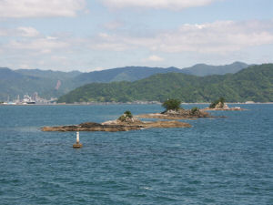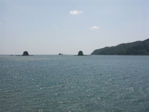 暁嵐瀧 今のパノラマ上浦浅海井村に在り高さ十丈許白龍空に懸り下て深飄と為る絶壁高く従え屹立屏風の如し夏時遊客多し此地薩摩芋を以て名あり 権現島 今のパノラマ大人島荒網代に在り 千両松 今のパノラマ屋島群島中の一小嶼に在り鶴の羽翼を張り一摶正に昇天するの姿勢あり一名を「なんきん松」と称す 群礁 今のパノラマ大入島高松と波太の中間に一直線を畫する点々の島嶼なり |
