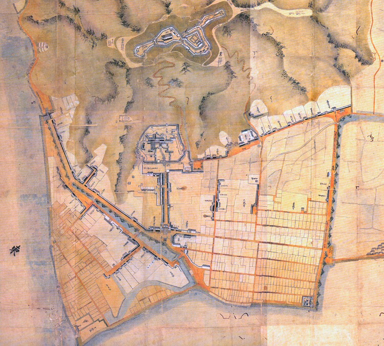 昔の地図です 今回は歴史を学びながら今回は町民が住んでいた部分を巡るコースです