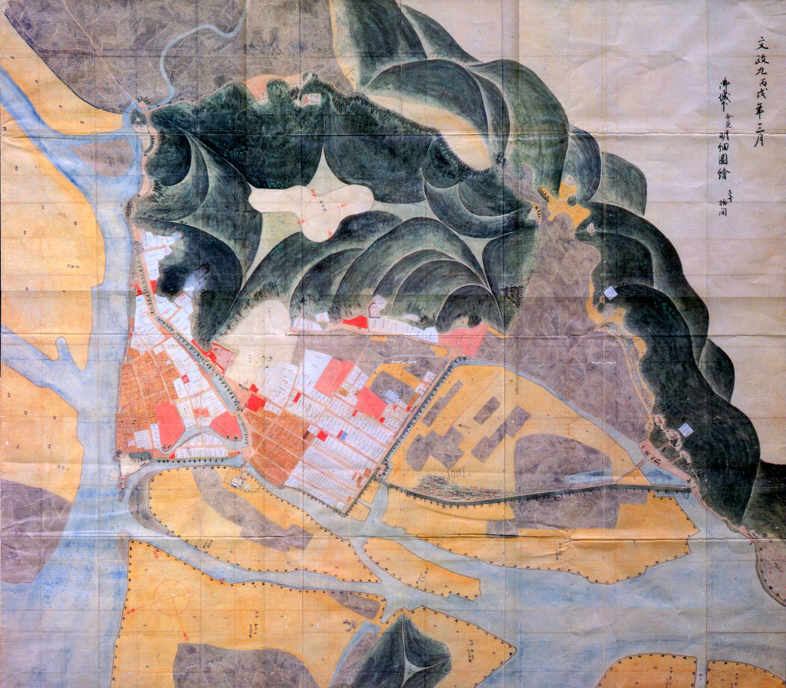 大分市のドムスムトウ社に文政9年の地図やその他の資料を元に