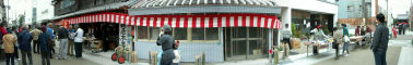 こうじ屋さんまえで甘酒とぜんざいのお接待を受けました