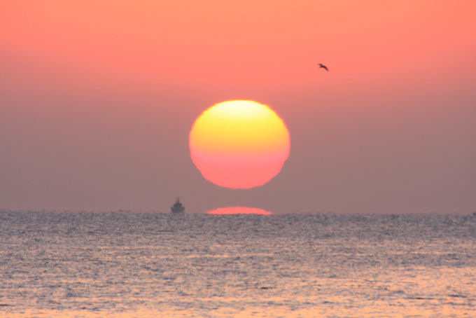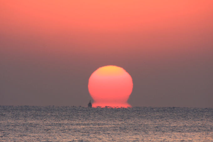 2008年1月6日午前7時10分頃撮影した海から昇る太陽 佐伯市米水津にて撮影
