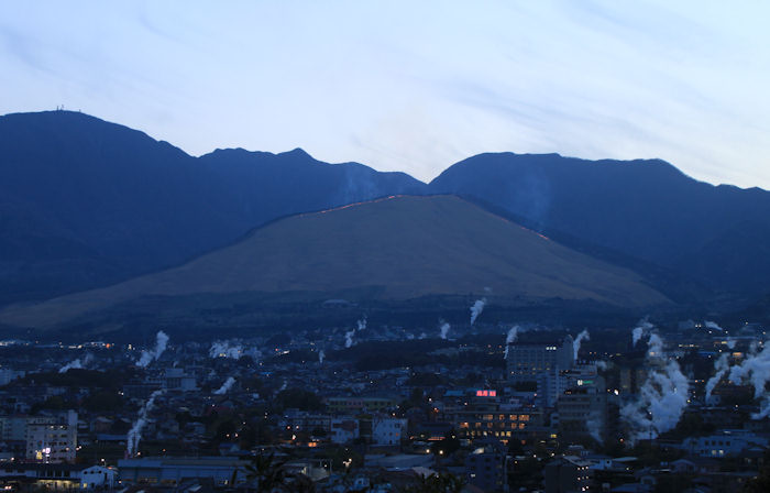 2013年湯煙展望台で初めて撮影した扇山の野焼き→ ブログ1 ブログ2