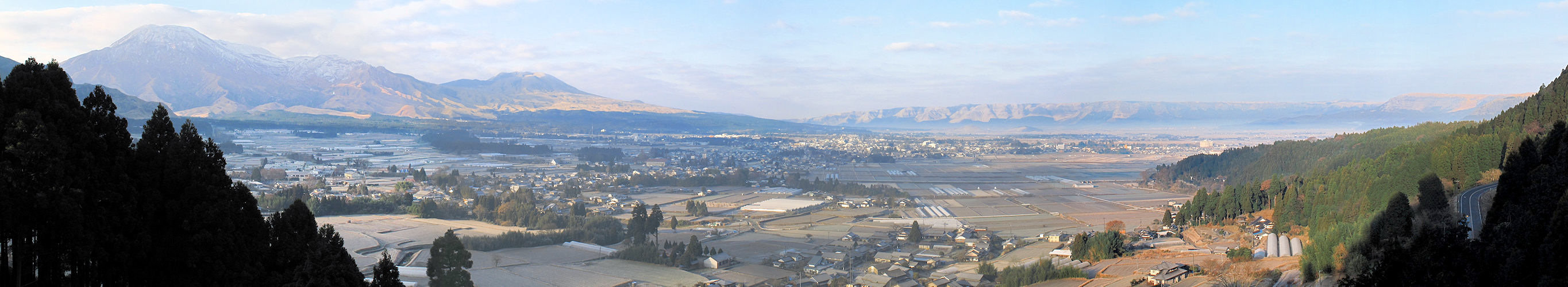 阿蘇外輪山の滝室坂から真冬の阿蘇盆地を眺める
