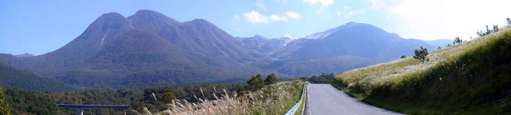 九重少年自然の家もあります、広がるすすきの高原風景をパノラマにしました。