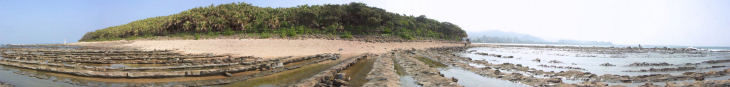 青島周辺は鬼の洗濯岩と言われる波状岩を従え、島内はビロウなどの亜熱帯植物が生い茂っています。