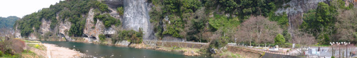 | 競い合うように立つ8つの岩からなる競秀峰は本耶馬渓を 代表する景勝地です。 その下は山国川で平行して青の洞門があります。 菊池寛の小説「恩讐の彼方に」の舞台として知られます、 禅海和尚がノミと槌だけで30年の長い年月をかけ 完成させたトンネルが「青の洞門」です。 ![]() |