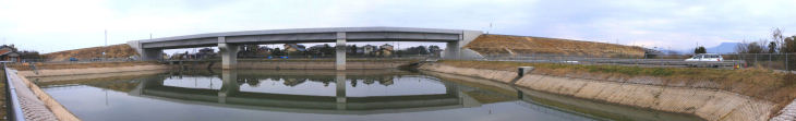 新しく開通する「中津日田道路3.6km」のパノラマ写真を撮影いたしました。