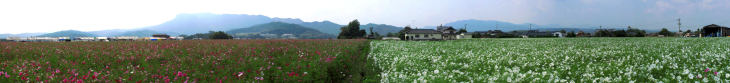 旧三光村コスモス祭りと八面山からのパノラマ写真
