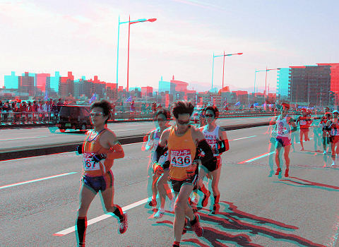 ↓下の写真をクリックすると立体写真で見る別大マラソン