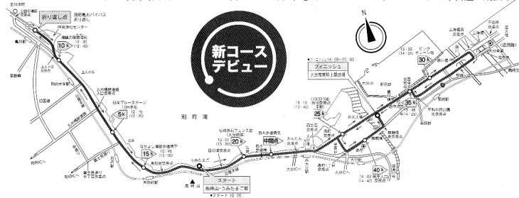 大分市営陸上競技場をゴール、別府市の亀川バイパス(別府市中央浄化センター付近)を折り返し地点