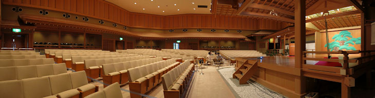 公園南側に位置する能楽堂では能楽はもとより、日本舞踊、邦楽、民謡、茶道など広く古典芸能での