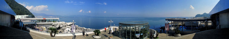 サルで有名な高崎山の下にある水族館「大分マリーンパレス水族館」でのパノラマ写真です。