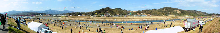 初めて参加した25回大会はあいにくの曇り空で完全に無風という悪条件ながら 参加者は河川敷を
