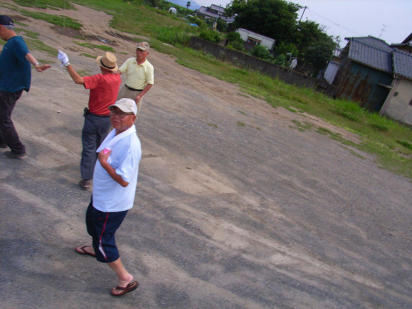 鶴崎文化研究会の方々と、これから凧を揚げます 撮影2009年7月7日