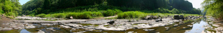沈堕の滝は高さ17m 幅110mと雄滝と幅4mの雌滝の2つの滝があります。 水墨画の大家雪舟の描いた「沈堕瀑図」のモデルとして知られています。 1909年(明治42年)に発電所の取水用に雄滝の上に堰が設けられ、1923年(大正12年)には堰がかさ上げされたため往時の景観が損なわれたが、1996年(平成8年)からの堰堤強化工事に伴い、常に水が流れるようになり、かつての壮大な景観を取り戻しました。 雄滝と雌滝の間には、石造の沈堕発電所跡地(近代化遺産)があり遊歩道も整備されており滝周辺の景観を楽しめます。。 ![]() |